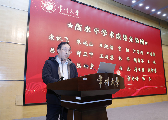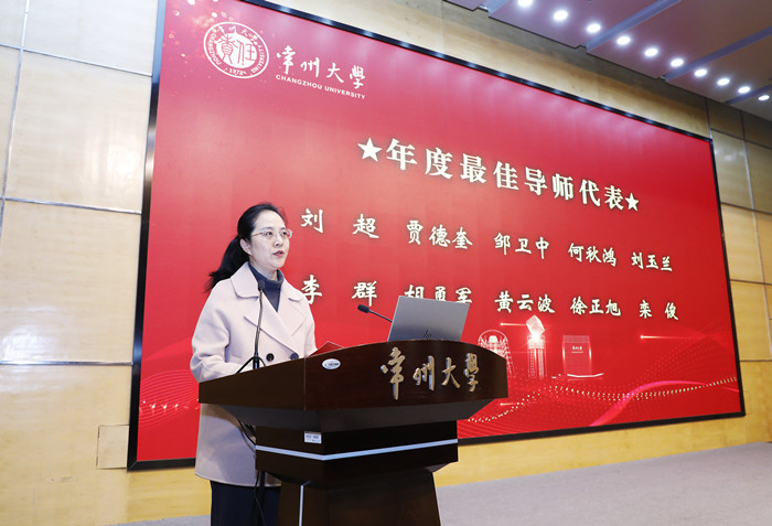 秦义宣读了2025年度在高级别科研项目、高水平学术成果、高质量社会服务方面表现优异的教师代表名单。杨琳宣读了《致常州大学2025年哲学社会科学研究最佳导师的感谢信》,对在辅导帮助青年教师成长、助力教师项目申报与成果产出中作出无私奉献的校内导师代表表示衷心感谢。