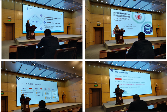 动员会后,外国语学院周小川副教授、史良法学院余小伟博士、周有光文学院王静雅博士、商学院徐益斌博士等四位青年教师分别作专题讲座,围绕高级别项目申报、持之以恒做学问等主题分享了宝贵的心得体会与具体的行动策略,为参会教师提供了有益的借鉴和启发。(通讯员:汤滨,审核:彭伟)