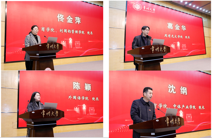 在交流发言环节,商学院院长佟金萍、周有光文学院院长葛金华、外国语学院院长陈颖、体育学院院长沈纲,马克思主义学院曾晨、计算机与人工智能学院焦竹青、商学院江玉庆、吴敬琏经济学院吴晓忠、史良法学院周平奇、瞿秋白政府管理学院谭书先、美术与设计学院金上策、赵元任音乐与戏剧学院于晓晶、外国语学院王刚、周有光文学院刘磊分别代表学院和个人作经验介绍与分享发言。人文社科处汇报了2025年度学校哲学社会科学工作概况。