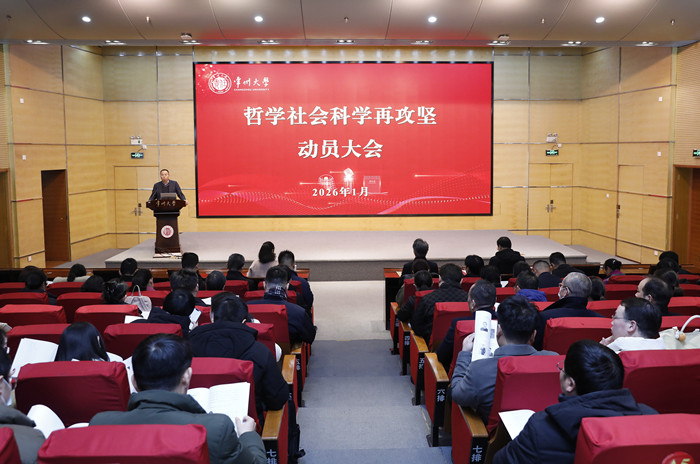 1月9日下午,学校在文彰楼报告厅召开哲学社会科学再攻坚动员大会,全面总结2025年学校哲学社会科学工作成绩,系统部署2026年重点任务。校党委书记徐守坤,党委常委、副校长杨琳,党委常委、组织部部长秦义出席会议。相关机关职能部门负责人,文科学院、实体科研机构负责人和教师代表,相关理工科学院、怀德学院负责人和教师代表200多人参加会议。人文社科处负责人主持会议。